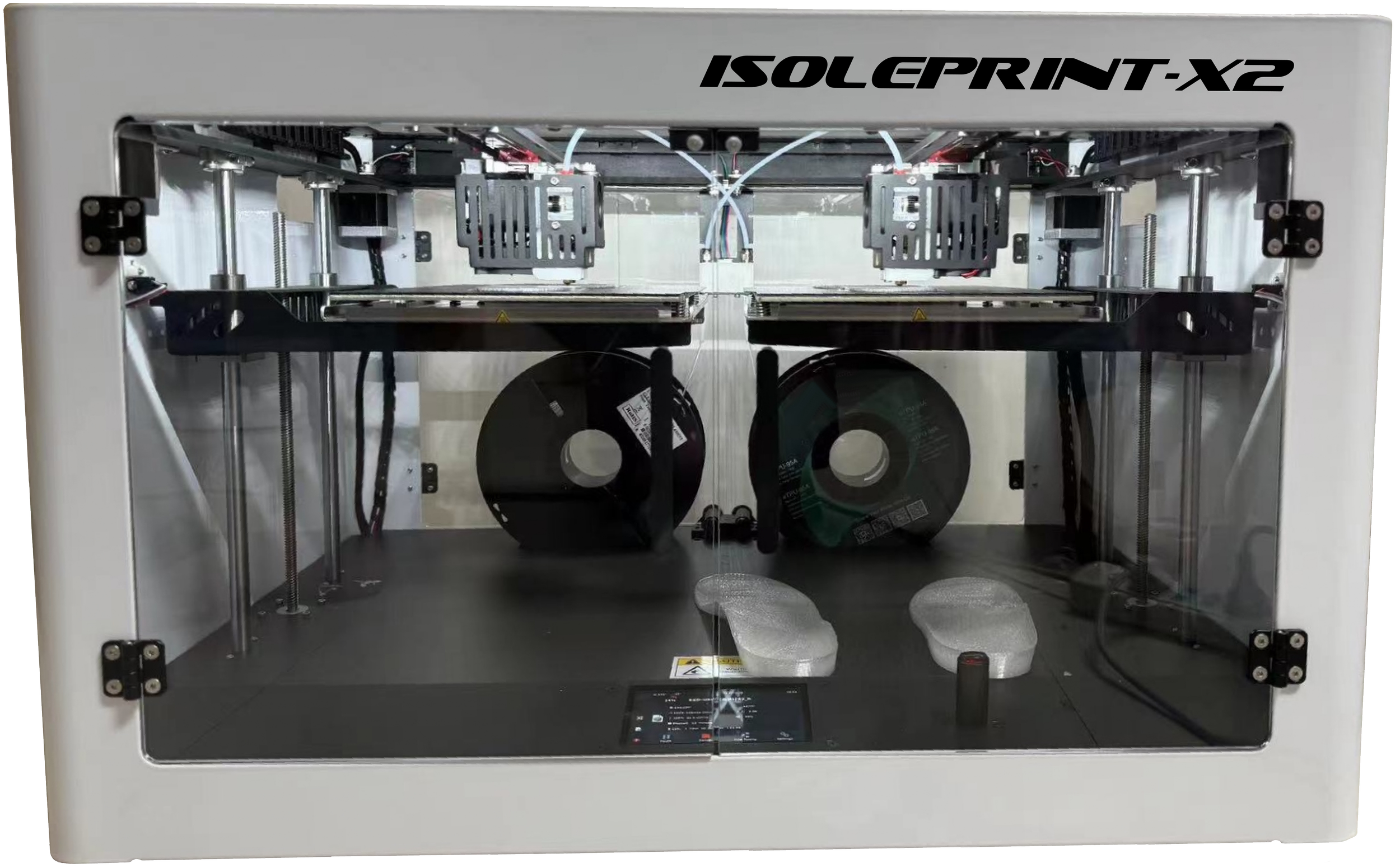 A professional 3D printer, built to revolutionize insole manufacturing in a small compact footprint suitable for retail shops and in-clinic use. The isoleprint-X2 is a proven printer with workhorse reliability offering fast print speeds for same-day dispensing of insoles and more precise print to shoe fit.